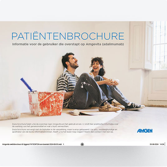Voor handige materialen zoals patiëntenbrochures, doseringsschema's en educatieve video's, kunt u terecht bij onze materialenservice. Deze materialen zijn ontworpen om u en uw patiënten te ondersteunen bij het gebruik van Amgevita®. Ze bieden waardevolle informatie en hulpmiddelen die de therapietrouw en het begrip van de behandeling kunnen verbeteren.